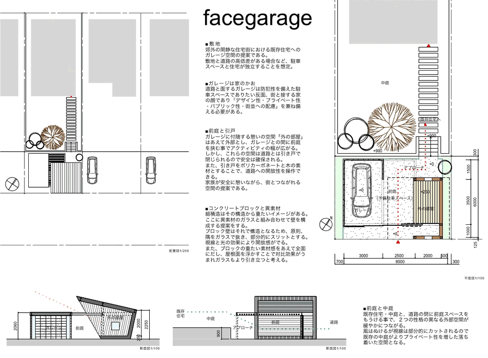 設計条件:ブロックガレージ「車が最低一台とめられ、プラスαの空間、約3坪程度を併設」